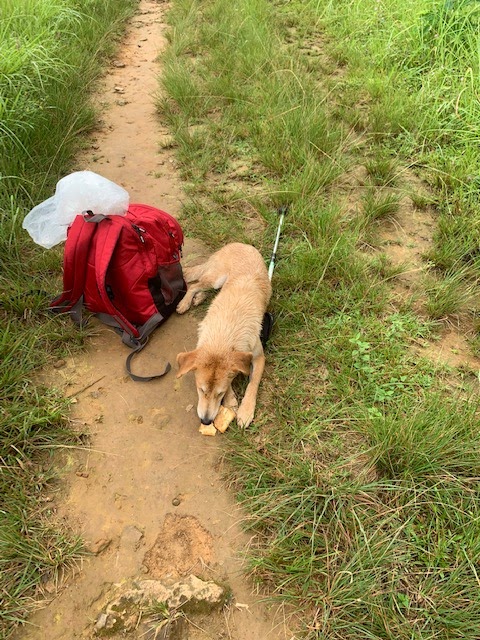 So I got online a day or two ago and found a new hotel that was advertising cut rate prices for the off-season. It was a luxury hotel about 1/2 way up to Sarangkot. So I packed my backpack and started off for the 1.5 hour hike to the hotel. There were great views along the way and I shared my picnic with a friend.